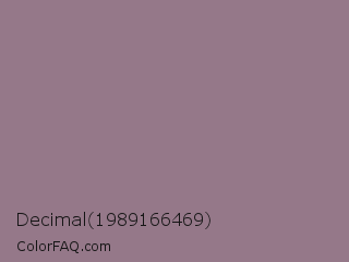 Decimal 1989166469 Color is a normal magenta color and the nearest color is Mountbatten Pink #997a8d. Hex code #957889 and RGB value is rgb(149,120,137). In RGB color space, this color is composed of 58% red, 47% green, 54% blue, In CMYK color space, this color is composed of 0% cyan, 19% magenta, 8% yellow , 42% black , In HSL color space, this color has a hue angle of 325° , 12% saturation and 53% lightness.