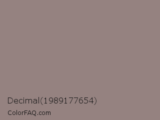 Decimal 1989177654 Color is a normal red color and the nearest color is Cinereous #98817b. Hex code #958280 and RGB value is rgb(149,130,128). In RGB color space, this color is composed of 58% red, 51% green, 50% blue, In CMYK color space, this color is composed of 0% cyan, 13% magenta, 14% yellow , 42% black , In HSL color space, this color has a hue angle of 6° , 9% saturation and 54% lightness.
