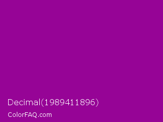 Decimal 1989411896 Color is a dark magenta color and the nearest color is Violet Eggplant #991199. Hex code #960496 and RGB value is rgb(150,4,150). In RGB color space, this color is composed of 59% red, 2% green, 59% blue, In CMYK color space, this color is composed of 0% cyan, 97% magenta, 0% yellow , 41% black , In HSL color space, this color has a hue angle of 300° , 95% saturation and 30% lightness.