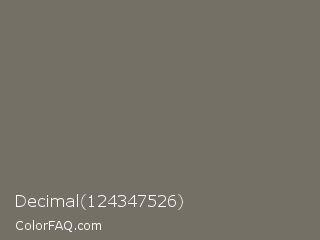 Decimal 124347526 Color is a normal orange color and the nearest color is Pablo #776f61. Hex code #757066 and RGB value is rgb(117,112,102). In RGB color space, this color is composed of 46% red, 44% green, 40% blue, In CMYK color space, this color is composed of 0% cyan, 4% magenta, 13% yellow , 54% black , In HSL color space, this color has a hue angle of 40° , 7% saturation and 43% lightness.