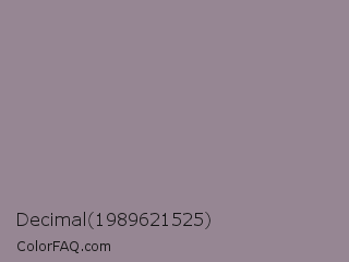 Decimal 1989621525 Color is a normal magenta color and the nearest color is Venus #928590. Hex code #968693 and RGB value is rgb(150,134,147). In RGB color space, this color is composed of 59% red, 53% green, 58% blue, In CMYK color space, this color is composed of 0% cyan, 11% magenta, 2% yellow , 41% black , In HSL color space, this color has a hue angle of 311° , 7% saturation and 56% lightness.