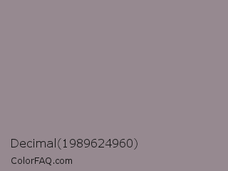 Decimal 1989624960 Color is a normal rose color and the nearest color is Venus #928590. Hex code #968990 and RGB value is rgb(150,137,144). In RGB color space, this color is composed of 59% red, 54% green, 56% blue, In CMYK color space, this color is composed of 0% cyan, 9% magenta, 4% yellow , 41% black , In HSL color space, this color has a hue angle of 328° , 6% saturation and 56% lightness.