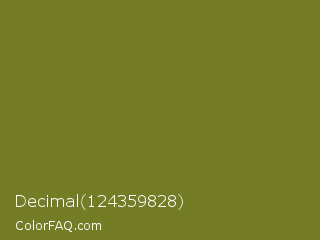 Decimal 124359828 Color is a normal yellow color and the nearest color is Crete #737829. Hex code #757c26 and RGB value is rgb(117,124,38). In RGB color space, this color is composed of 46% red, 49% green, 15% blue, In CMYK color space, this color is composed of 6% cyan, 0% magenta, 69% yellow , 51% black , In HSL color space, this color has a hue angle of 65° , 53% saturation and 32% lightness.