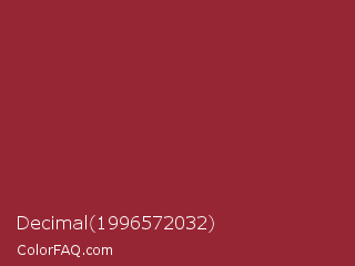 Decimal 1996572032 Color is a normal red color and the nearest color is Japanese Carmine #9d2933. Hex code #972634 and RGB value is rgb(151,38,52). In RGB color space, this color is composed of 59% red, 15% green, 20% blue, In CMYK color space, this color is composed of 0% cyan, 75% magenta, 66% yellow , 41% black , In HSL color space, this color has a hue angle of 353° , 60% saturation and 37% lightness.
