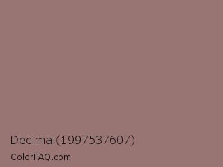 Decimal 1997537607 Color is a normal red color and the nearest color is Bazaar #98777b. Hex code #987473 and RGB value is rgb(152,116,115). In RGB color space, this color is composed of 60% red, 45% green, 45% blue, In CMYK color space, this color is composed of 0% cyan, 24% magenta, 24% yellow , 40% black , In HSL color space, this color has a hue angle of 2° , 15% saturation and 52% lightness.