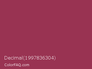Decimal 1997836304 Color is a normal rose color and the nearest color is Quinacridone Magenta #8e3a59. Hex code #993352 and RGB value is rgb(153,51,82). In RGB color space, this color is composed of 60% red, 20% green, 32% blue, In CMYK color space, this color is composed of 0% cyan, 67% magenta, 46% yellow , 40% black , In HSL color space, this color has a hue angle of 342° , 50% saturation and 40% lightness.
