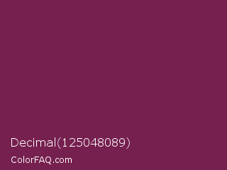 Decimal 125048089 Color is a dark magenta color and the nearest color is Pansy Purple #78184a. Hex code #76204f and RGB value is rgb(118,32,79). In RGB color space, this color is composed of 46% red, 13% green, 31% blue, In CMYK color space, this color is composed of 0% cyan, 73% magenta, 33% yellow , 54% black , In HSL color space, this color has a hue angle of 327° , 57% saturation and 29% lightness.