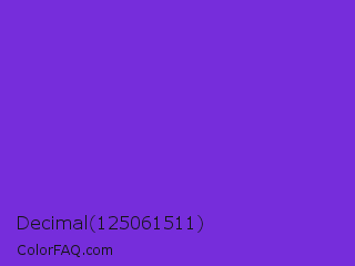 Decimal 125061511 Color is a normal violet color and the nearest color is Blue Violet #8a2be2. Hex code #762ddb and RGB value is rgb(118,45,219). In RGB color space, this color is composed of 46% red, 18% green, 86% blue, In CMYK color space, this color is composed of 46% cyan, 79% magenta, 0% yellow , 14% black , In HSL color space, this color has a hue angle of 265° , 71% saturation and 52% lightness.