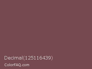 Decimal 125116439 Color is a normal red color and the nearest color is Ferra #704f50. Hex code #764951 and RGB value is rgb(118,73,81). In RGB color space, this color is composed of 46% red, 29% green, 32% blue, In CMYK color space, this color is composed of 0% cyan, 38% magenta, 31% yellow , 54% black , In HSL color space, this color has a hue angle of 349° , 24% saturation and 37% lightness.