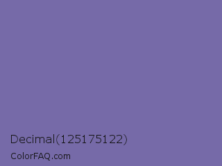 Decimal 125175122 Color is a normal indigo color and the nearest color is Deluge #7563a8. Hex code #766aa8 and RGB value is rgb(118,106,168). In RGB color space, this color is composed of 46% red, 42% green, 66% blue, In CMYK color space, this color is composed of 30% cyan, 37% magenta, 0% yellow , 34% black , In HSL color space, this color has a hue angle of 252° , 26% saturation and 54% lightness.