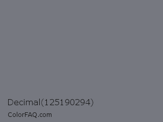 Decimal 125190294 Color is a normal blue color and the nearest color is Rolling Stone #747d83. Hex code #767880 and RGB value is rgb(118,120,128). In RGB color space, this color is composed of 46% red, 47% green, 50% blue, In CMYK color space, this color is composed of 8% cyan, 6% magenta, 0% yellow , 50% black , In HSL color space, this color has a hue angle of 228° , 4% saturation and 48% lightness.