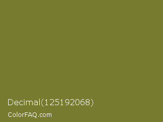 Decimal 125192068 Color is a normal yellow color and the nearest color is Pesto #7c7631. Hex code #767b30 and RGB value is rgb(118,123,48). In RGB color space, this color is composed of 46% red, 48% green, 19% blue, In CMYK color space, this color is composed of 4% cyan, 0% magenta, 61% yellow , 52% black , In HSL color space, this color has a hue angle of 64° , 44% saturation and 34% lightness.