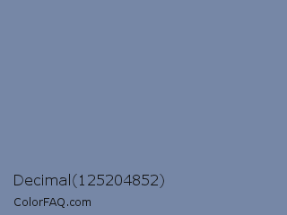 Decimal 125204852 Color is a normal blue color and the nearest color is Shadow Blue #778ba5. Hex code #7687a6 and RGB value is rgb(118,135,166). In RGB color space, this color is composed of 46% red, 53% green, 65% blue, In CMYK color space, this color is composed of 29% cyan, 19% magenta, 0% yellow , 35% black , In HSL color space, this color has a hue angle of 219° , 21% saturation and 56% lightness.