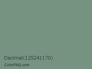 Decimal 125241170 Color is a normal green color and the nearest color is Laurel #749378. Hex code #769280 and RGB value is rgb(118,146,128). In RGB color space, this color is composed of 46% red, 57% green, 50% blue, In CMYK color space, this color is composed of 19% cyan, 0% magenta, 12% yellow , 43% black , In HSL color space, this color has a hue angle of 141° , 11% saturation and 52% lightness.