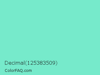 Decimal 125383509 Color is a light cyan color and the nearest color is Bermuda #7dd8c6. Hex code #76eacb and RGB value is rgb(118,234,203). In RGB color space, this color is composed of 46% red, 92% green, 80% blue, In CMYK color space, this color is composed of 50% cyan, 0% magenta, 13% yellow , 8% black , In HSL color space, this color has a hue angle of 164° , 73% saturation and 69% lightness.