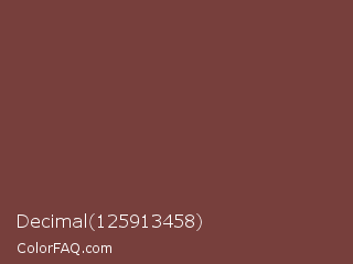 Decimal 125913458 Color is a normal red color and the nearest color is Medium Tuscan Red #79443b. Hex code #773f3c and RGB value is rgb(119,63,60). In RGB color space, this color is composed of 47% red, 25% green, 24% blue, In CMYK color space, this color is composed of 0% cyan, 47% magenta, 50% yellow , 53% black , In HSL color space, this color has a hue angle of 3° , 33% saturation and 35% lightness.