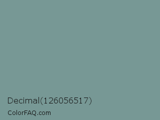 Decimal 126056517 Color is a normal cyan color and the nearest color is Juniper #6d9292. Hex code #779895 and RGB value is rgb(119,152,149). In RGB color space, this color is composed of 47% red, 60% green, 58% blue, In CMYK color space, this color is composed of 22% cyan, 0% magenta, 2% yellow , 40% black , In HSL color space, this color has a hue angle of 175° , 14% saturation and 53% lightness.