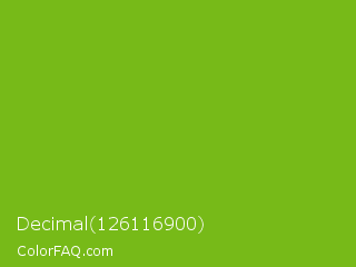 Decimal 126116900 Color is a normal green color and the nearest color is Lima #76bd17. Hex code #77ba18 and RGB value is rgb(119,186,24). In RGB color space, this color is composed of 47% red, 73% green, 9% blue, In CMYK color space, this color is composed of 36% cyan, 0% magenta, 87% yellow , 27% black , In HSL color space, this color has a hue angle of 85° , 77% saturation and 41% lightness.