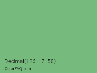 Decimal 126117158 Color is a normal green color and the nearest color is Iguana Green #71bc78. Hex code #77ba7e and RGB value is rgb(119,186,126). In RGB color space, this color is composed of 47% red, 73% green, 49% blue, In CMYK color space, this color is composed of 36% cyan, 0% magenta, 32% yellow , 27% black , In HSL color space, this color has a hue angle of 126° , 33% saturation and 60% lightness.