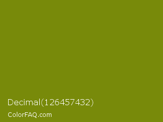 Decimal 126457432 Color is a dark yellow color and the nearest color is Olive #808000. Hex code #788a0a and RGB value is rgb(120,138,10). In RGB color space, this color is composed of 47% red, 54% green, 4% blue, In CMYK color space, this color is composed of 13% cyan, 0% magenta, 93% yellow , 46% black , In HSL color space, this color has a hue angle of 68° , 86% saturation and 29% lightness.