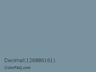 Decimal 126886161 Color is a normal blue color and the nearest color is Shadow Blue #778ba5. Hex code #78939f and RGB value is rgb(120,147,159). In RGB color space, this color is composed of 47% red, 58% green, 62% blue, In CMYK color space, this color is composed of 25% cyan, 8% magenta, 0% yellow , 38% black , In HSL color space, this color has a hue angle of 198° , 17% saturation and 55% lightness.