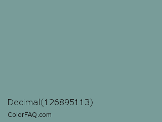 Decimal 126895113 Color is a normal cyan color and the nearest color is Sea Nymph #78a39c. Hex code #789c99 and RGB value is rgb(120,156,153). In RGB color space, this color is composed of 47% red, 61% green, 60% blue, In CMYK color space, this color is composed of 23% cyan, 0% magenta, 2% yellow , 39% black , In HSL color space, this color has a hue angle of 175° , 15% saturation and 54% lightness.