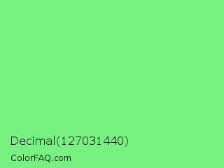 Decimal 127031440 Color is a light green color and the nearest color is Very Light Malachite Green #64e986. Hex code #78f082 and RGB value is rgb(120,240,130). In RGB color space, this color is composed of 47% red, 94% green, 51% blue, In CMYK color space, this color is composed of 50% cyan, 0% magenta, 46% yellow , 6% black , In HSL color space, this color has a hue angle of 125° , 80% saturation and 71% lightness.