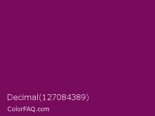Decimal 127084389 Color is a dark magenta color and the nearest color is French Plum #811453. Hex code #790b5d and RGB value is rgb(121,11,93). In RGB color space, this color is composed of 47% red, 4% green, 36% blue, In CMYK color space, this color is composed of 0% cyan, 91% magenta, 23% yellow , 53% black , In HSL color space, this color has a hue angle of 315° , 83% saturation and 26% lightness.