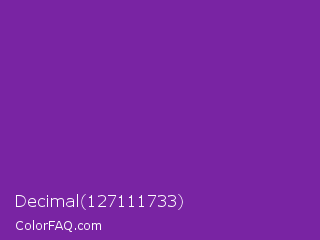 Decimal 127111733 Color is a normal purple color and the nearest color is Grape #6f2da8. Hex code #7924a3 and RGB value is rgb(121,36,163). In RGB color space, this color is composed of 47% red, 14% green, 64% blue, In CMYK color space, this color is composed of 26% cyan, 78% magenta, 0% yellow , 36% black , In HSL color space, this color has a hue angle of 280° , 64% saturation and 39% lightness.