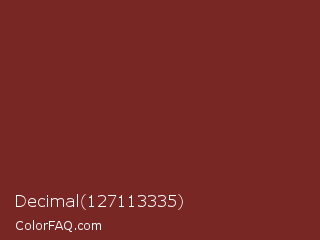 Decimal 127113335 Color is a normal red color and the nearest color is Crown Of Thorns #771f1f. Hex code #792725 and RGB value is rgb(121,39,37). In RGB color space, this color is composed of 47% red, 15% green, 15% blue, In CMYK color space, this color is composed of 0% cyan, 68% magenta, 69% yellow , 53% black , In HSL color space, this color has a hue angle of 1° , 53% saturation and 31% lightness.