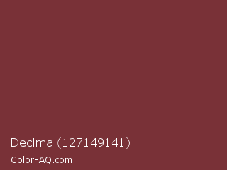 Decimal 127149141 Color is a normal red color and the nearest color is Wine #722f37. Hex code #793137 and RGB value is rgb(121,49,55). In RGB color space, this color is composed of 47% red, 19% green, 22% blue, In CMYK color space, this color is composed of 0% cyan, 60% magenta, 55% yellow , 53% black , In HSL color space, this color has a hue angle of 355° , 42% saturation and 33% lightness.