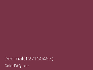 Decimal 127150467 Color is a normal rose color and the nearest color is Catawba #703642. Hex code #793347 and RGB value is rgb(121,51,71). In RGB color space, this color is composed of 47% red, 20% green, 28% blue, In CMYK color space, this color is composed of 0% cyan, 58% magenta, 41% yellow , 53% black , In HSL color space, this color has a hue angle of 343° , 41% saturation and 34% lightness.