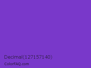 Decimal 127157140 Color is a normal violet color and the nearest color is Purple Heart Crayola #652dc1. Hex code #7938ca and RGB value is rgb(121,56,202). In RGB color space, this color is composed of 47% red, 22% green, 79% blue, In CMYK color space, this color is composed of 40% cyan, 72% magenta, 0% yellow , 21% black , In HSL color space, this color has a hue angle of 267° , 58% saturation and 51% lightness.