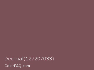Decimal 127207033 Color is a normal red color and the nearest color is Russett #755a57. Hex code #795157 and RGB value is rgb(121,81,87). In RGB color space, this color is composed of 47% red, 32% green, 34% blue, In CMYK color space, this color is composed of 0% cyan, 33% magenta, 28% yellow , 53% black , In HSL color space, this color has a hue angle of 351° , 20% saturation and 40% lightness.