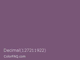 Decimal 127211922 Color is a normal magenta color and the nearest color is Falcon #7f626d. Hex code #795678 and RGB value is rgb(121,86,120). In RGB color space, this color is composed of 47% red, 34% green, 47% blue, In CMYK color space, this color is composed of 0% cyan, 29% magenta, 1% yellow , 53% black , In HSL color space, this color has a hue angle of 302° , 17% saturation and 41% lightness.