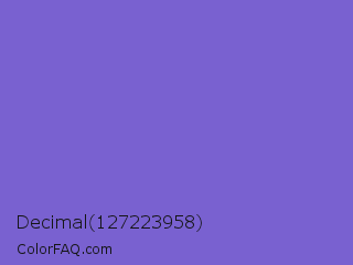 Decimal 127223958 Color is a normal indigo color and the nearest color is Blue Marguerite #7666c6. Hex code #7961d0 and RGB value is rgb(121,97,208). In RGB color space, this color is composed of 47% red, 38% green, 82% blue, In CMYK color space, this color is composed of 42% cyan, 53% magenta, 0% yellow , 18% black , In HSL color space, this color has a hue angle of 253° , 54% saturation and 60% lightness.