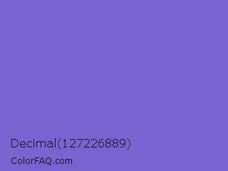 Decimal 127226889 Color is a normal indigo color and the nearest color is Blue Marguerite #7666c6. Hex code #7963d1 and RGB value is rgb(121,99,209). In RGB color space, this color is composed of 47% red, 39% green, 82% blue, In CMYK color space, this color is composed of 42% cyan, 53% magenta, 0% yellow , 18% black , In HSL color space, this color has a hue angle of 252° , 54% saturation and 60% lightness.