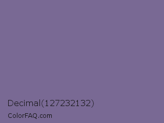 Decimal 127232132 Color is a normal violet color and the nearest color is Rum #796989. Hex code #796994 and RGB value is rgb(121,105,148). In RGB color space, this color is composed of 47% red, 41% green, 58% blue, In CMYK color space, this color is composed of 18% cyan, 29% magenta, 0% yellow , 42% black , In HSL color space, this color has a hue angle of 262° , 17% saturation and 50% lightness.