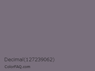 Decimal 127239062 Color is a normal purple color and the nearest color is Fedora #796a78. Hex code #796f7c and RGB value is rgb(121,111,124). In RGB color space, this color is composed of 47% red, 44% green, 49% blue, In CMYK color space, this color is composed of 2% cyan, 10% magenta, 0% yellow , 51% black , In HSL color space, this color has a hue angle of 286° , 6% saturation and 46% lightness.