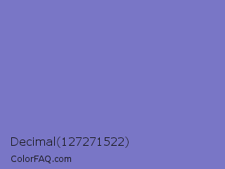 Decimal 127271522 Color is a light indigo color and the nearest color is Toolbox #746cc0. Hex code #7976c6 and RGB value is rgb(121,118,198). In RGB color space, this color is composed of 47% red, 46% green, 78% blue, In CMYK color space, this color is composed of 39% cyan, 40% magenta, 0% yellow , 22% black , In HSL color space, this color has a hue angle of 242° , 41% saturation and 62% lightness.