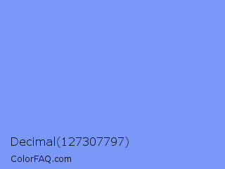 Decimal 127307797 Color is a light blue color and the nearest color is Portage #8b9fee. Hex code #7998f7 and RGB value is rgb(121,152,247). In RGB color space, this color is composed of 47% red, 60% green, 97% blue, In CMYK color space, this color is composed of 51% cyan, 38% magenta, 0% yellow , 3% black , In HSL color space, this color has a hue angle of 225° , 89% saturation and 72% lightness.