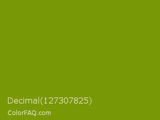 Decimal 127307825 Color is a normal lime color and the nearest color is Limeade #6f9d02. Hex code #799907 and RGB value is rgb(121,153,7). In RGB color space, this color is composed of 47% red, 60% green, 3% blue, In CMYK color space, this color is composed of 21% cyan, 0% magenta, 95% yellow , 40% black , In HSL color space, this color has a hue angle of 73° , 91% saturation and 31% lightness.