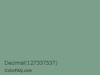 Decimal 127337537 Color is a normal green color and the nearest color is Oxley #779e86. Hex code #799e89 and RGB value is rgb(121,158,137). In RGB color space, this color is composed of 47% red, 62% green, 54% blue, In CMYK color space, this color is composed of 23% cyan, 0% magenta, 13% yellow , 38% black , In HSL color space, this color has a hue angle of 146° , 16% saturation and 55% lightness.