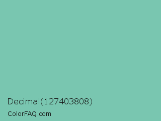 Decimal 127403808 Color is a light green color and the nearest color is Neptune #7cb7bb. Hex code #79c6b0 and RGB value is rgb(121,198,176). In RGB color space, this color is composed of 47% red, 78% green, 69% blue, In CMYK color space, this color is composed of 39% cyan, 0% magenta, 11% yellow , 22% black , In HSL color space, this color has a hue angle of 163° , 40% saturation and 63% lightness.
