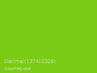 Decimal 127410329 Color is a normal green color and the nearest color is Lima #76bd17. Hex code #79cc13 and RGB value is rgb(121,204,19). In RGB color space, this color is composed of 47% red, 80% green, 7% blue, In CMYK color space, this color is composed of 41% cyan, 0% magenta, 91% yellow , 20% black , In HSL color space, this color has a hue angle of 87° , 83% saturation and 44% lightness.