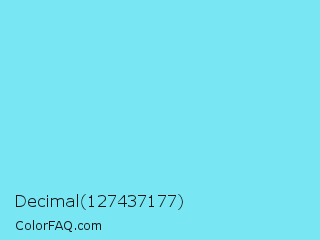 Decimal 127437177 Color is a light cyan color and the nearest color is Spray #79deec. Hex code #79e6f3 and RGB value is rgb(121,230,243). In RGB color space, this color is composed of 47% red, 90% green, 95% blue, In CMYK color space, this color is composed of 50% cyan, 5% magenta, 0% yellow , 5% black , In HSL color space, this color has a hue angle of 186° , 84% saturation and 71% lightness.
