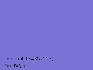Decimal 134367113 Color is a light indigo color and the nearest color is Moody Blue #7f76d3. Hex code #7a72d5 and RGB value is rgb(122,114,213). In RGB color space, this color is composed of 48% red, 45% green, 84% blue, In CMYK color space, this color is composed of 43% cyan, 46% magenta, 0% yellow , 16% black , In HSL color space, this color has a hue angle of 245° , 54% saturation and 64% lightness.