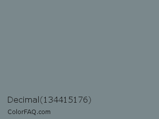 Decimal 134415176 Color is a normal cyan color and the nearest color is Gunsmoke #828685. Hex code #7a888c and RGB value is rgb(122,136,140). In RGB color space, this color is composed of 48% red, 53% green, 55% blue, In CMYK color space, this color is composed of 13% cyan, 3% magenta, 0% yellow , 45% black , In HSL color space, this color has a hue angle of 193° , 7% saturation and 51% lightness.