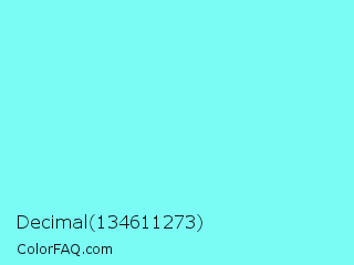 Decimal 134611273 Color is a light cyan color and the nearest color is Electric Blue #7df9ff. Hex code #7afcf5 and RGB value is rgb(122,252,245). In RGB color space, this color is composed of 48% red, 99% green, 96% blue, In CMYK color space, this color is composed of 52% cyan, 0% magenta, 3% yellow , 1% black , In HSL color space, this color has a hue angle of 177° , 96% saturation and 73% lightness.