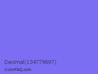 Decimal 134779697 Color is a light indigo color and the nearest color is Medium Slate Blue #7b68ee. Hex code #7b6ef3 and RGB value is rgb(123,110,243). In RGB color space, this color is composed of 48% red, 43% green, 95% blue, In CMYK color space, this color is composed of 49% cyan, 55% magenta, 0% yellow , 5% black , In HSL color space, this color has a hue angle of 246° , 85% saturation and 69% lightness.